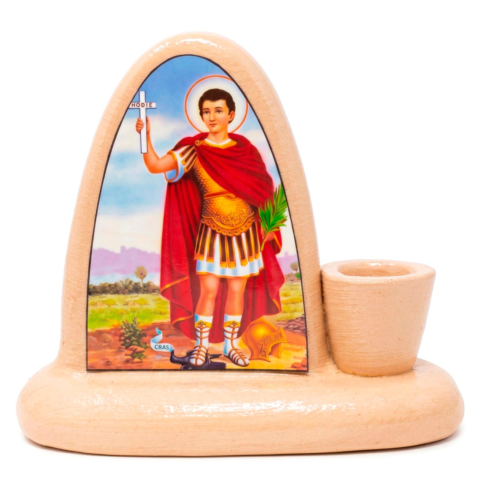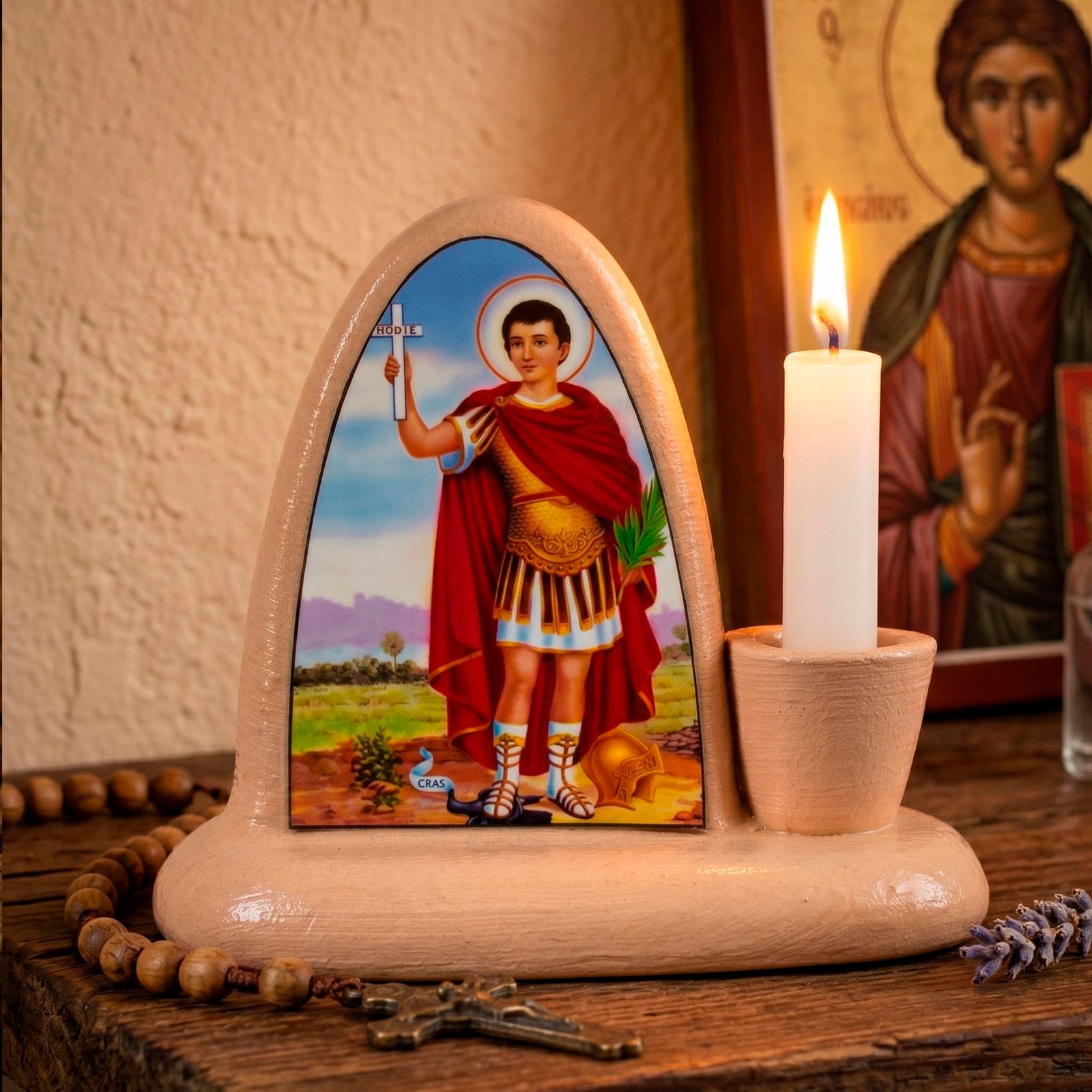 Crea un rincón de fe y pronta respuesta en tu hogar con este altar dedicado a San Expedito, el santo de las causas que no pueden esperar. Diseñado para invocar su intercesión en los momentos donde se necesita una solución rápida, incluye un soporte para vela que simboliza la luz de la esperanza que ilumina nuestras decisiones presentes. Un espacio sagrado para pedir coraje y resolución, confiando en que bajo su guía, los obstáculos se transforman en caminos abiertos hoy mismo.