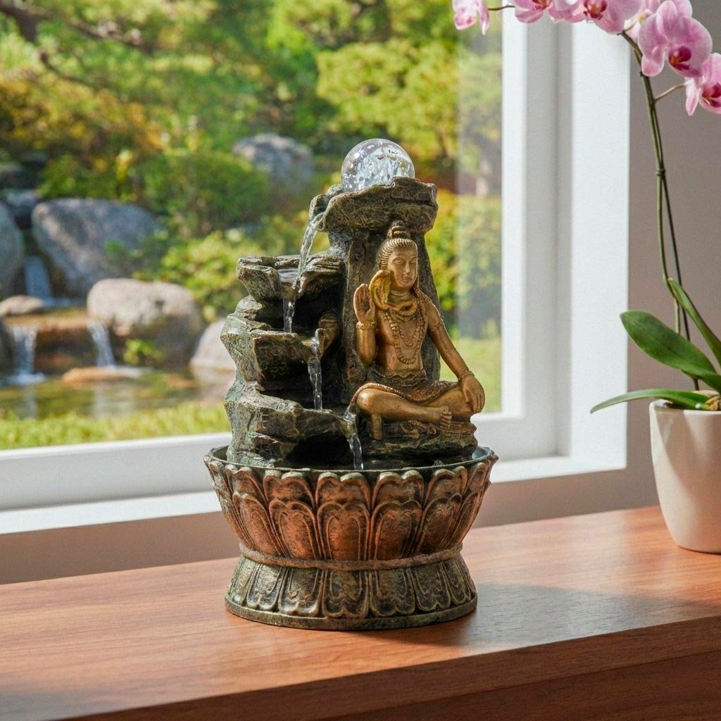 Fuente de agua Indu dorada tres niveles
