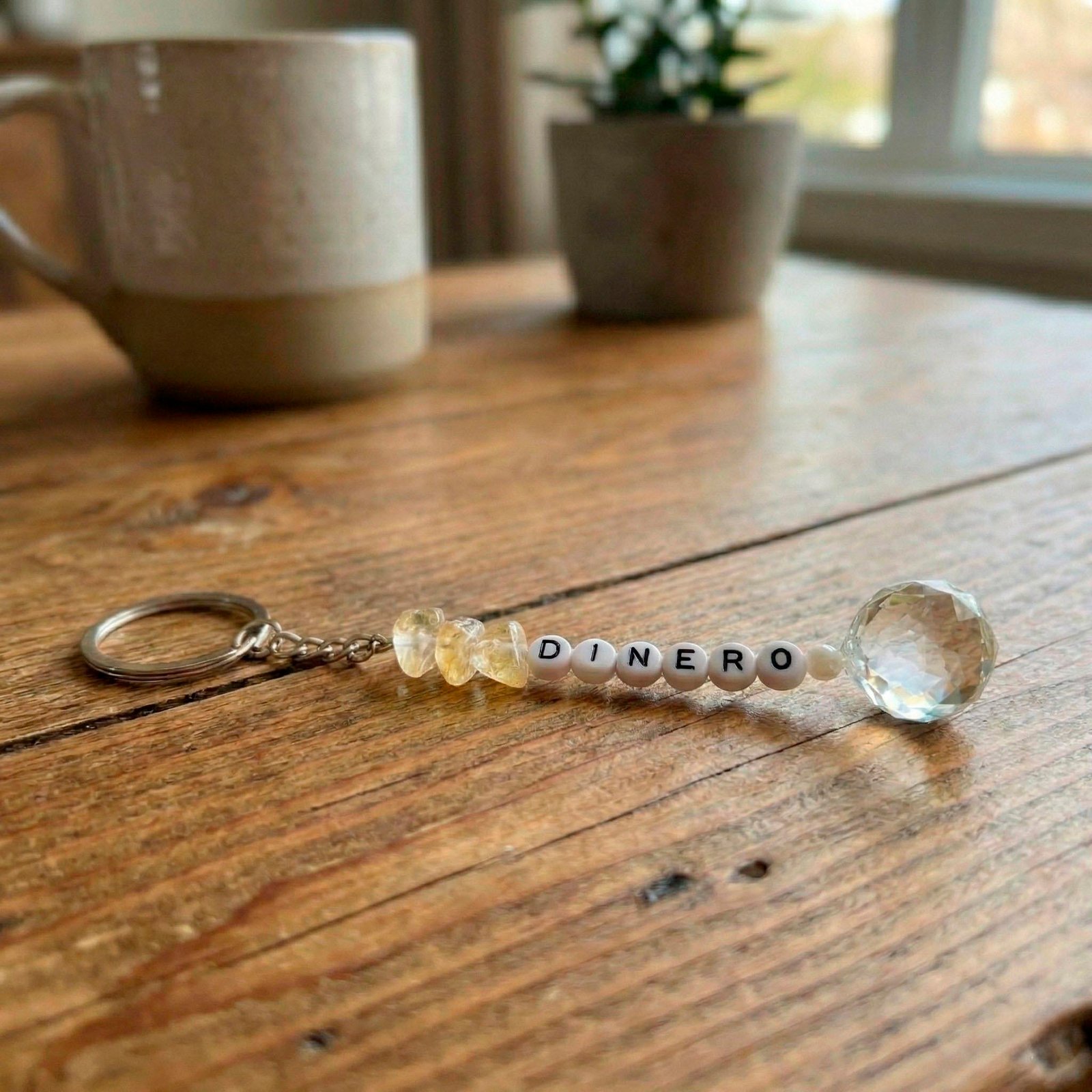 Llavero artesanal con citrino auténtico, la piedra de la prosperidad y el éxito.