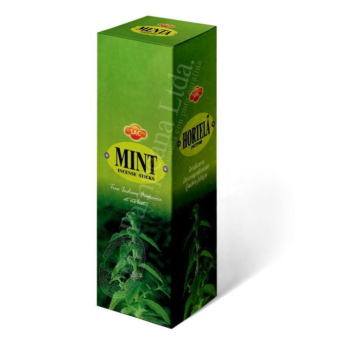 Menta sahumerio en varitas Cajita con 8 sahumerio en varitas SAC, muy aromaticos y reconocidos internacionalmente por su calidad.