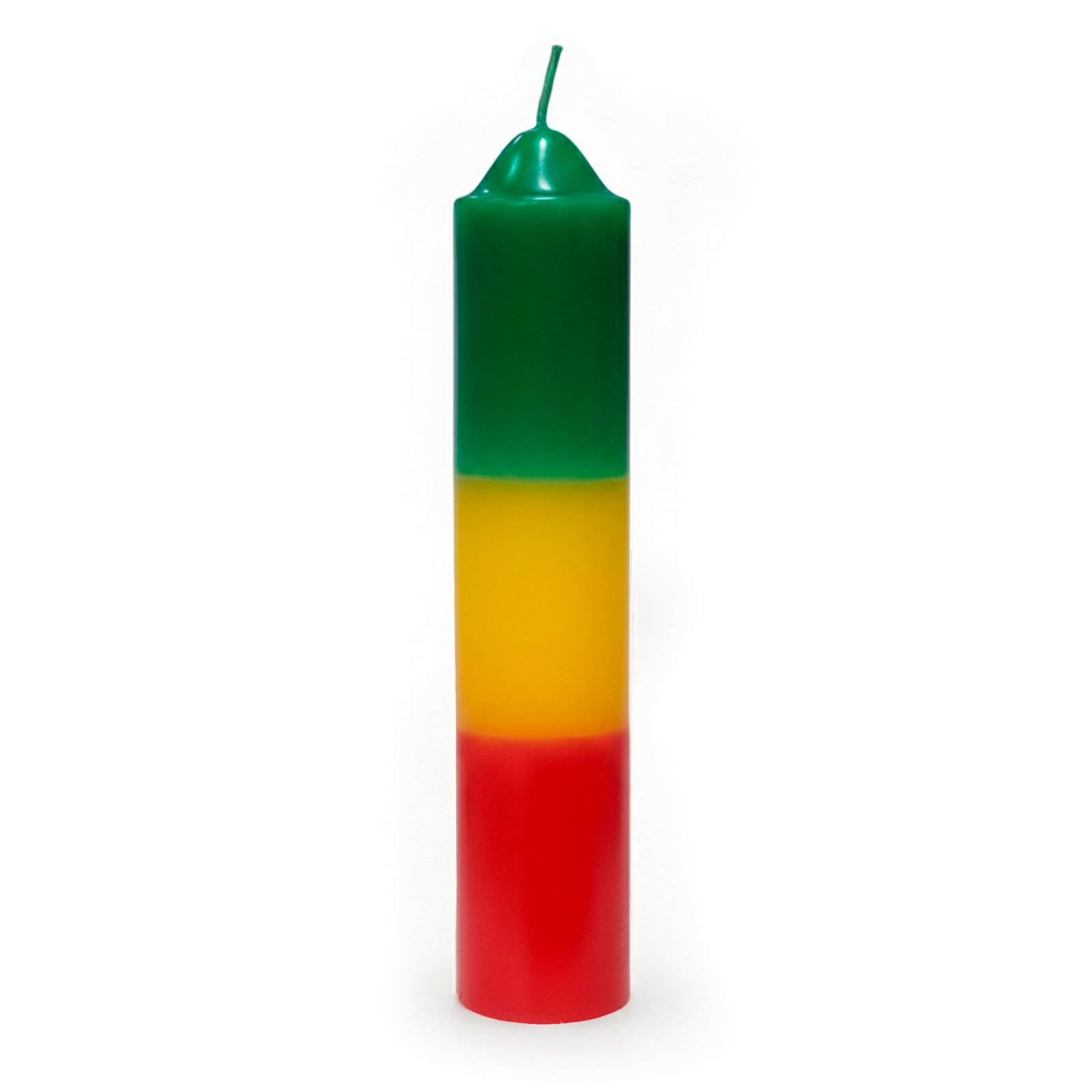 Velón pilar grande Verde, amarillo y rojo de 4x20cm combinado