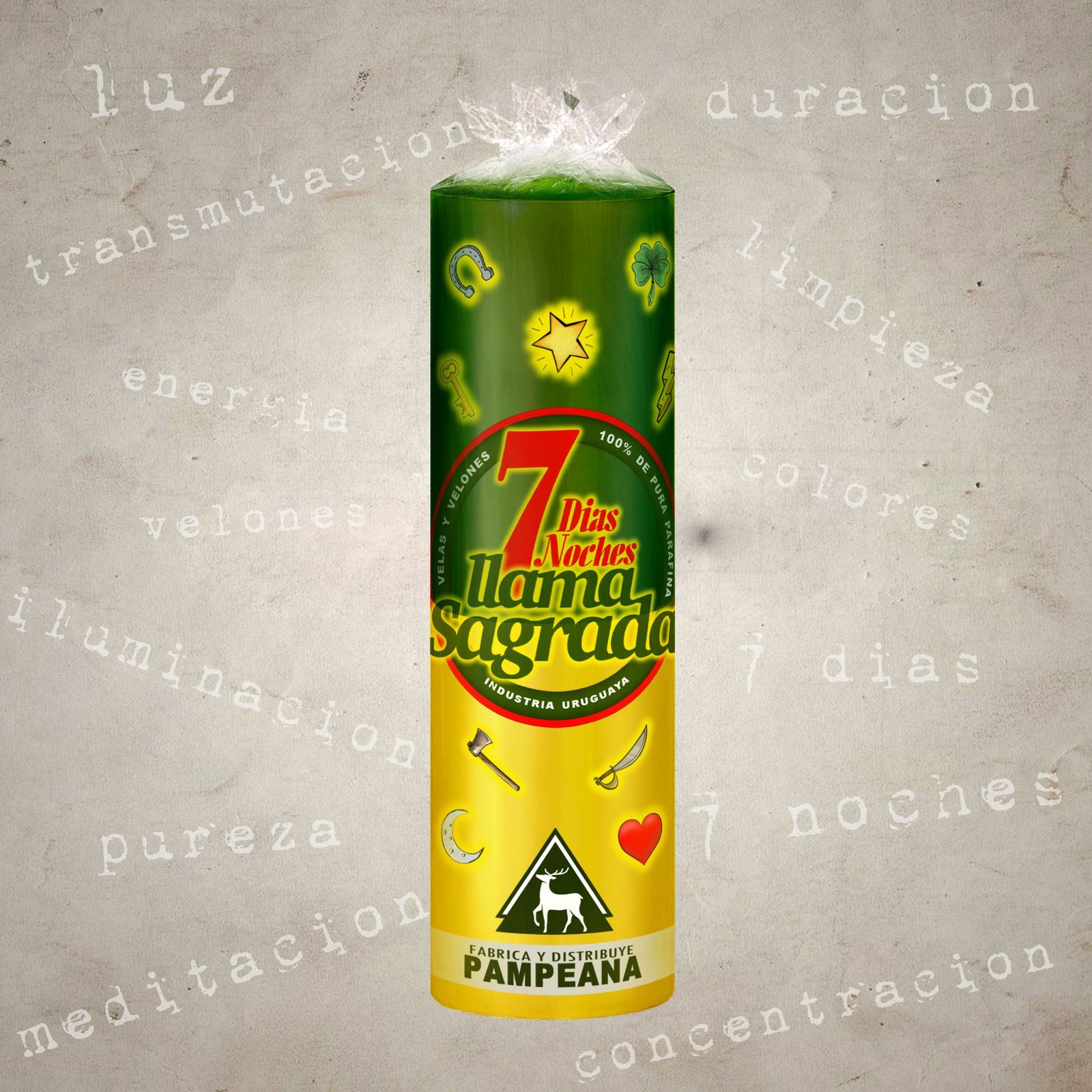 Velón 7 días Llama Sagrada verde y amarillo
