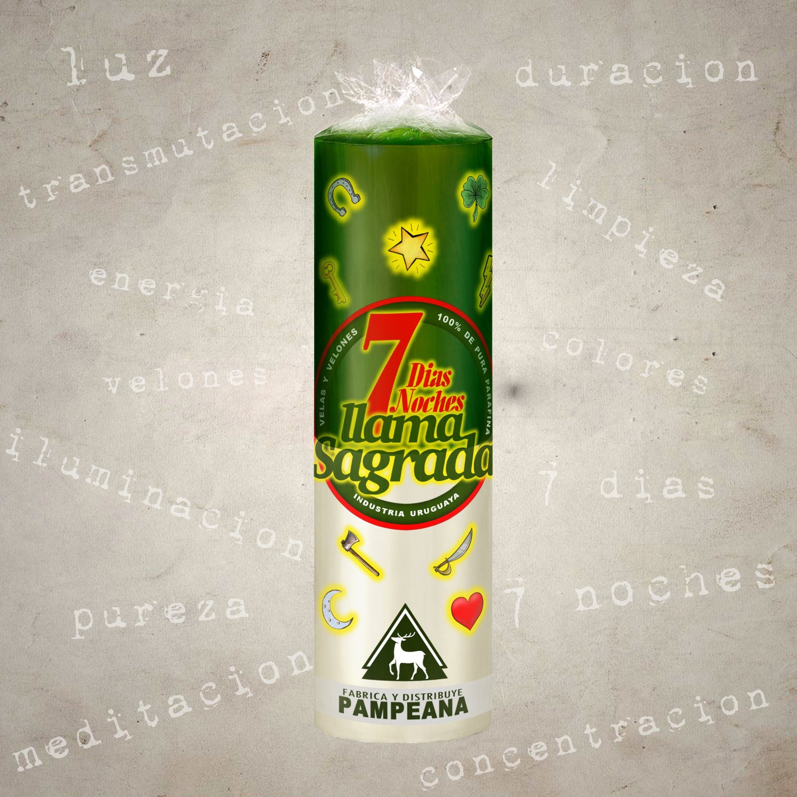 Velón 7 días Llama Sagrada verde y blanco