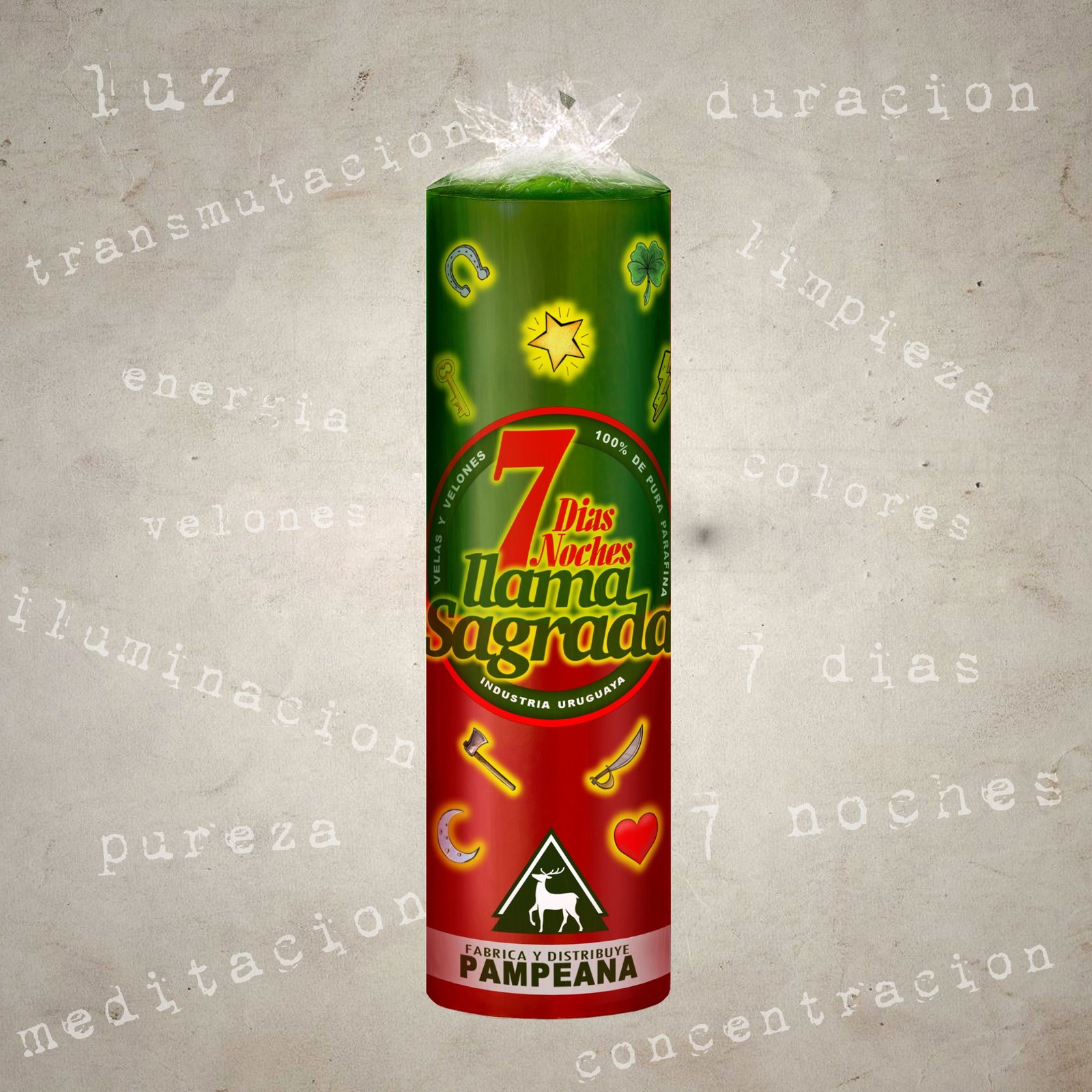 Velón 7 días Llama Sagrada verde y rojo